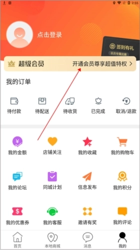 1、打开掌上靖安APP进入首页,点击底部导航栏的【我的】选项。进入个人中心界面后,找到并点击【超级会员】入口。