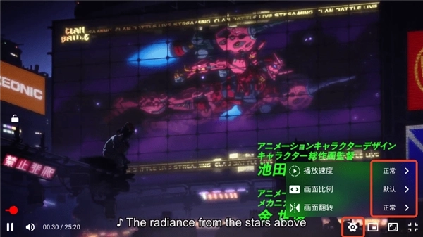 全屏后若需调整播放速度等设置,点击下方的设置按钮即可。