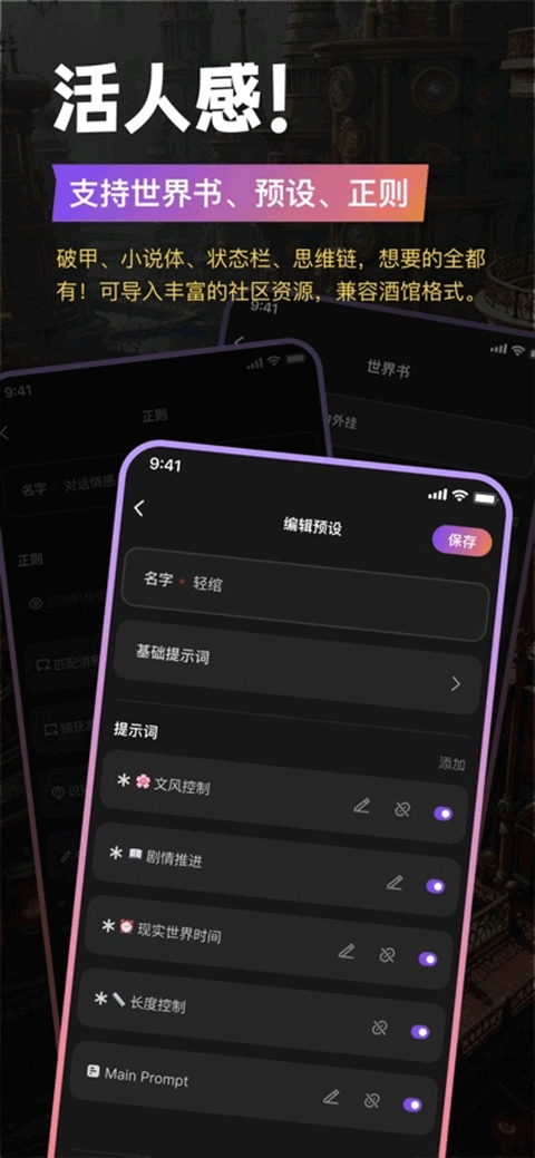 能和SillyTavern生态实现无缝对接,还可以调用它的预设库、世界观(Lorebook)以及正则表达式(Regex)功能,以此来拓展角色扮演的深度。