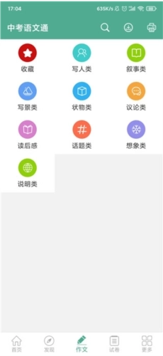 4、作文板块:涵盖中考作文及各类中考作文大全,当前共设有九个分类的作文大全内容。