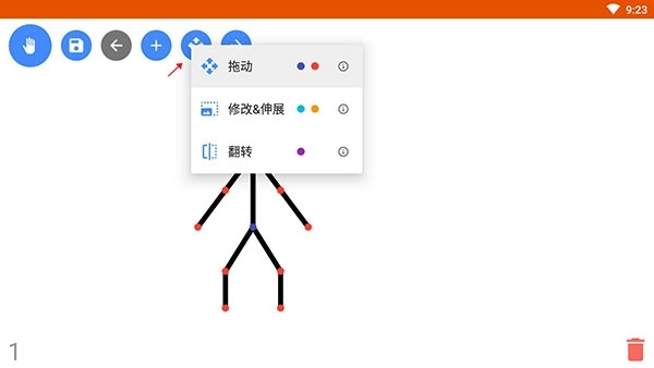 6、点击工具栏的“+”可以实现火柴人的形状改变;