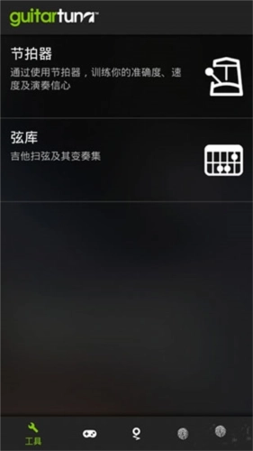 6、点左下角的扳手按钮进入工具页面,这里有节拍器与弦库两个工具