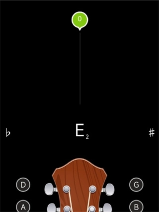 指针正对着中间。左偏或者右偏一格也没关系。E2,这个2表示第二个八度的意思,可以不用管它。比如1弦标准音是E4,表示第四个八度的E。