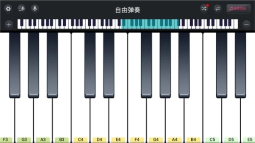 2、进入主页面后,这里的界面设计得像一架钢琴,我们可以在这里自由练习弹奏,同时还能使用页面上提供的诸多功能。
