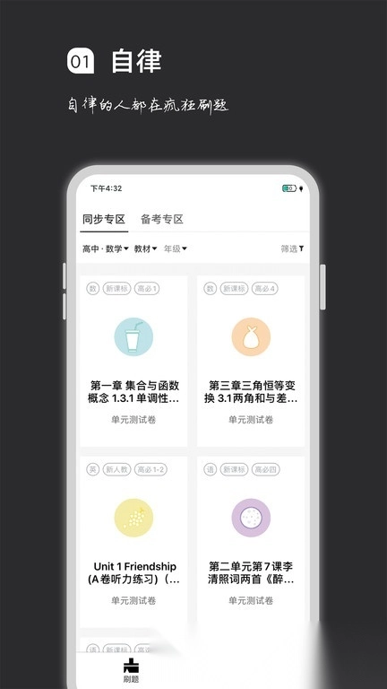 多种题目类型可供自由选择,简化学习过程,助力快速提高分数,牢固掌握各类知识点。