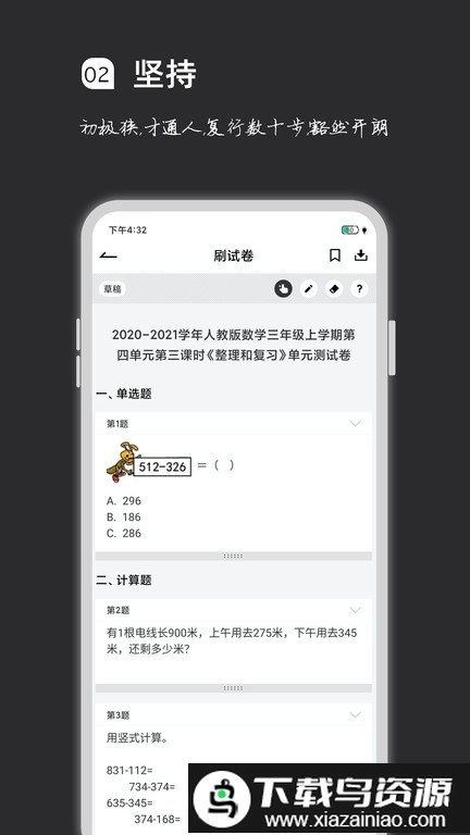 这款应用汇集了丰富多样的题目资源,方便用户轻松享受在线练习带来的好处。它采用了别具一格的学习方式和实用的进阶功能,助力使用者体会解决难题的满足感,进而扎实地增长知识储备。