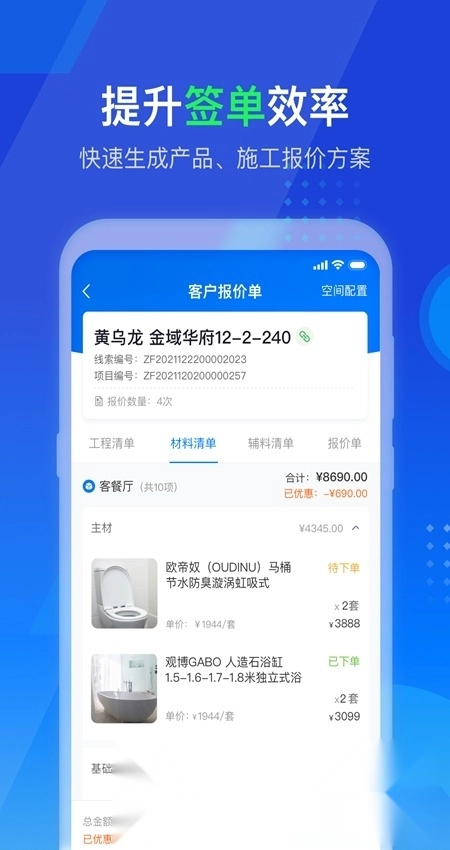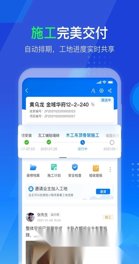 这款软件利用科技力量实现家装业务的数字化转型,依托信息化技术和项目规划,把原本零散的业务流程进行系统化整合,推动销售、设计师、工长、监理、供应商以及客服等多个岗位人员的协同合作,进而全面提高家装行业的服务效率和质量水平。