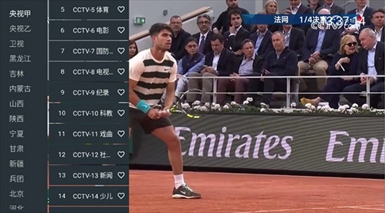 1、进入首页页面后,点击屏幕任意位置,左侧栏便会呈现众多电视频道。