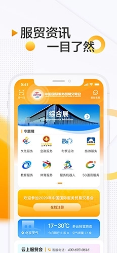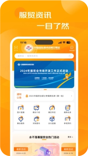 提供1个综合展、8个专题展、N个功能服务区的快捷入口,展示服务贸易最新公告和资讯,方便用户随时随地了解服贸会的动态,并支持离线访问。