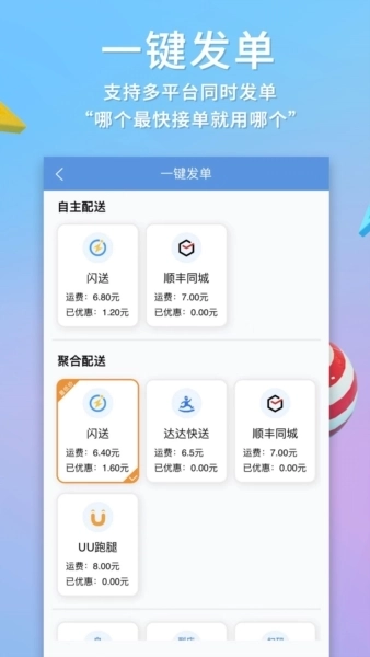 快速开通配送服务,涵盖多家配送运力资源,一键开通