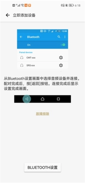 “Sony|MusicCenter”会在BLUETOOTH连接成功后自动开启,请根据屏幕上的指引进行操作。
