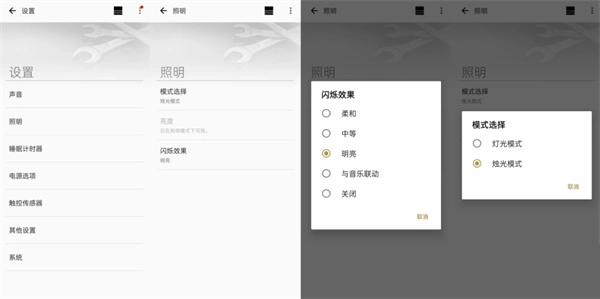 通过该端能够直观地对音箱和灯光进行设置,在灯光设置界面中可以看到多种灯光效果的调节选项。