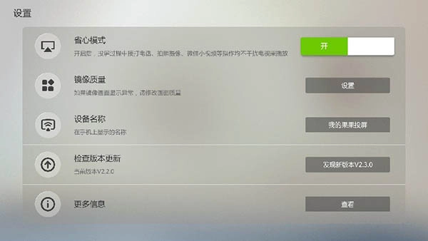 果果投屏是一款非常好用的智能投屏软件,操作十分便捷,安装简单且内存小巧。它提供多种功能,致力于打造画面流畅的投屏工具,让更多朋友都能轻松使用这款专业的投屏软件,满足用户多方面的使用需求。