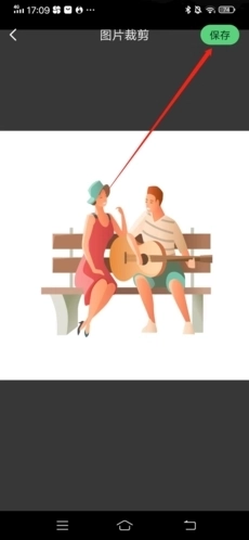 4、打开手机相册,找到你想更换的图片,先对图片进行裁剪调整至合适大小,接着点击页面右上方的“保存”按钮即可。