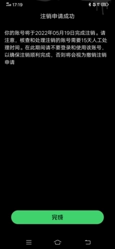 5、如此一来,我们便顺利提交了账号注销的申请,接下来只需等待15天且期间不要登录该账号,就能完成注销流程了。