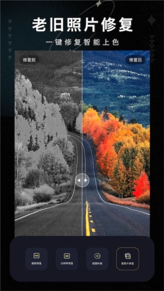 3.对各类照片进行修复:既能处理模糊、失真、色差之类的问题,也能够修复黑白照片、老照片以及复古照片等不同类型的照片。