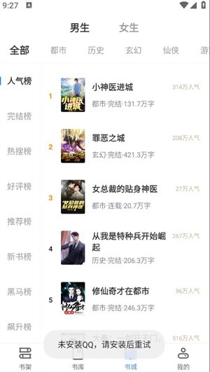 2、平台设有众多热门小说排行榜,彻底解决书荒困扰,榜单中的作品均备受读者青睐。