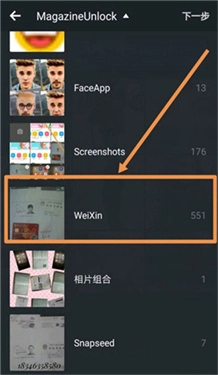 3、这时会进入不同照片的相册文件夹列表,点击需要添加照片所在的相册文件夹,这里点击的是weixin相册文件夹,在微信里收到的图片,手动保存后都会存放在这个文件夹里。