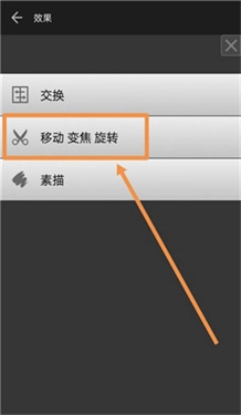 8、若需调整图片位置,点击交换标志即可;若要调整组成长图的图片位置,可在弹出的菜单中点击移动、变焦、旋转标志。