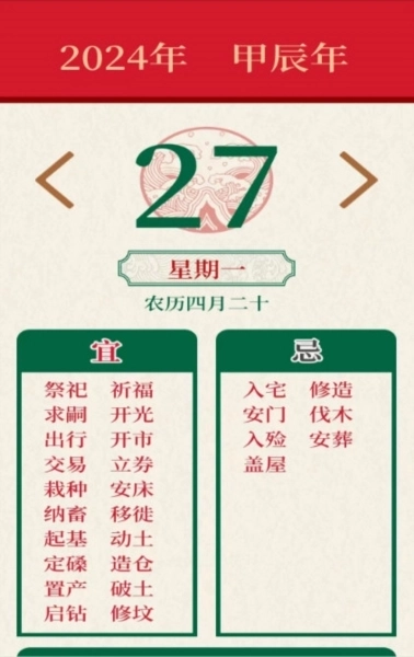 可以自由切换日期和时间,这样就能了解每一天的宜忌事项,挑选日子时会更加便捷。