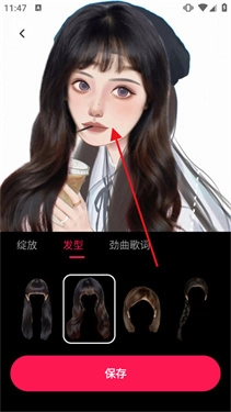 3、可选择喜欢的发型并装饰在人物的面部上,还可以随意进行挑选,如下图所示;
