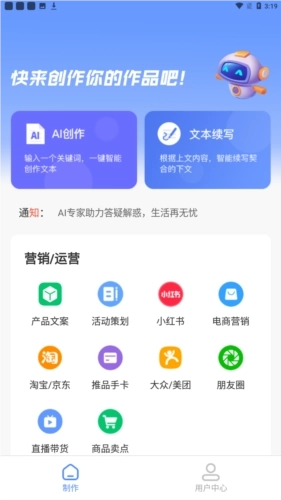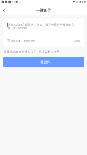 AI创作功能,只需输入你的文章需求或一个关键词,就能一键智能生成文本,让文本创作过程变得更加轻松简单。