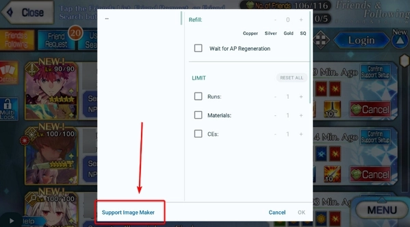 打开FGO应用。切换到支援选择界面或者好友列表页面,并且要确认你想使用的从者/概念礼装处于可见状态(需要注意的是,从者与概念礼装的整个显示区域都得能看到)。