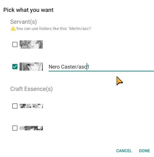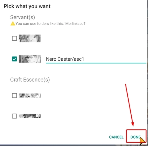 关于仆人图像,您可使用以下文件夹:Nero/asc1。该操作会在FGA/support/servant/Nero文件夹中生成一个名为asc1.png的文件。