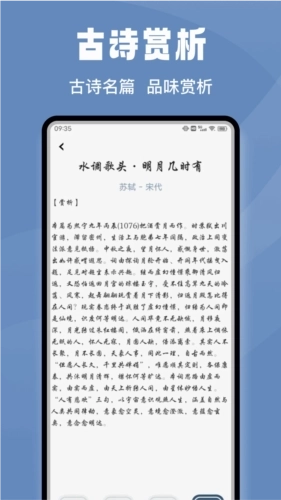软件支持古诗词赏析功能,用户能够随时在平台上进行各朝代古诗词的赏析。