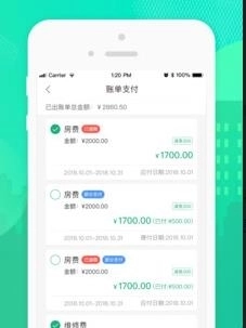 3、账单支付:房费、水费等各项费用支付完成后,可通过平台查询账单详情;