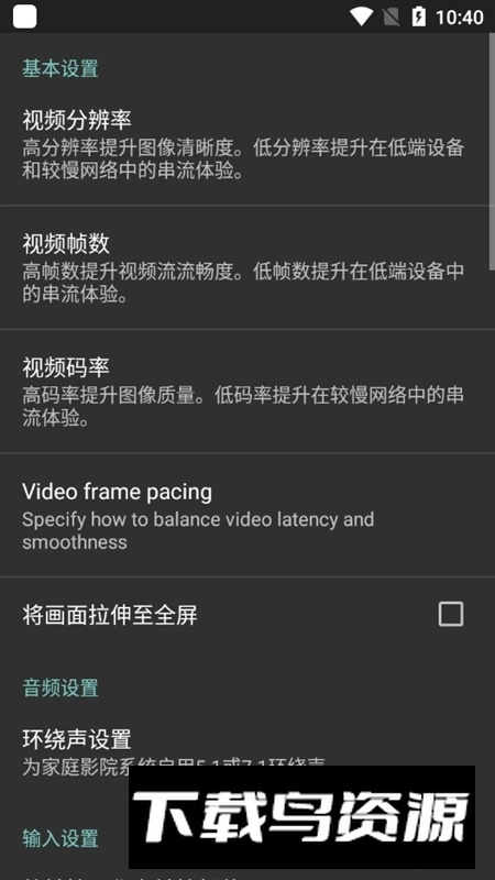 高级选项允许解锁高帧率串流,但需注意设备兼容性;