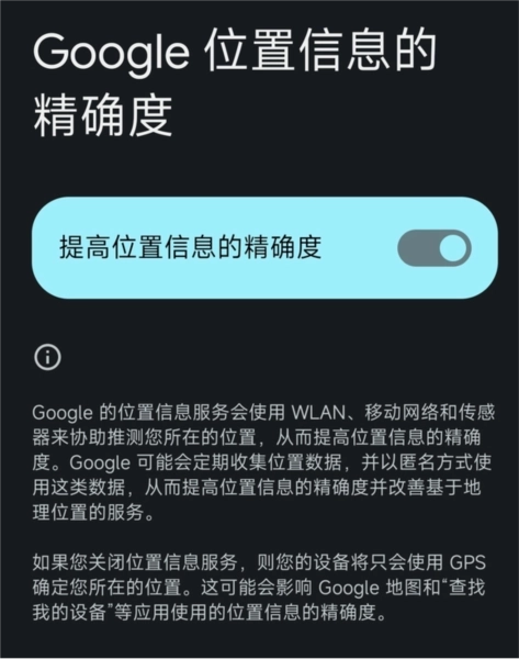 要是你的手机定位详细设置中存在“谷歌高精度位置服务”,也得把它开启,这样就能防止出现已经授予权限但仍然弹窗提示无定位权限的情况。