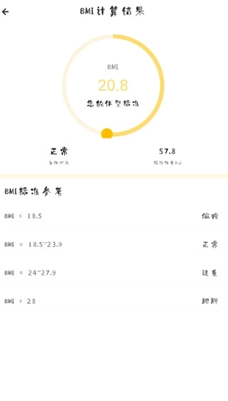 1、可根据身高体重值,提供标准的体重参考范围