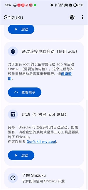 13、最后回到shizuku界面,点击启动按钮就能成功激活了