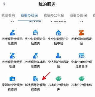 进入我的服务,找到我要办社保,找到下方的城乡居民社保缴费查询,点击进入