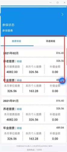 3、点开“参保缴费”显示本人“缴费明细”和“待遇明细”第三步:点开“参保缴费”显示本人“缴费明细”和“待遇明细”