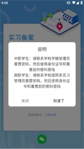 2、高职学生:请联系学校或院系实习管理员重置密码,然后使用身份证号和重置后的密码登录