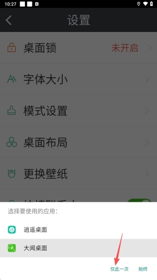 4、然后用户可以选择仅此一次、或是始终,之后就设置成了大闻桌面。