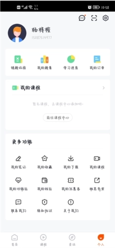 5、点击进入“我的”页面,这里为用户设置了错题本、学习进度、我的订单等多个功能板块。