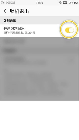 3、在“锁机增强”的设置选项里,点击“强制退出”这一列表项。
