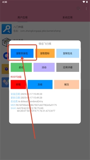 5、具备强大的安装包提取功能,支持一键复制各类快捷信息内容。