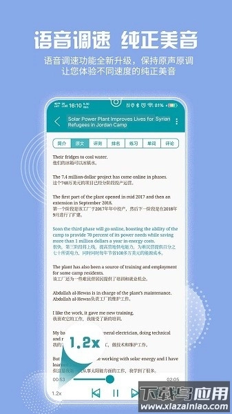 3. 语音同步且可灵活切换:长按单词就能查词,支持中英文互切,便于将文章分享给好友。
