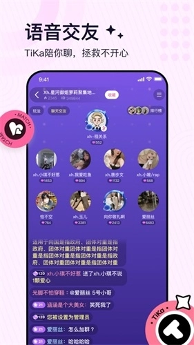 TiKa是厦门仟淼信息咨询服务有限公司开发的语音社交应用。平台上设有多种主题的语音聊天室,用户能和各地朋友畅快聊天,还能组队开黑玩游戏。此外,你或许会邂逅心仪的TA,开启一段浪漫情缘。在这里,声音是唯一的“通行证”,动人的嗓音能吸引更多互动。感兴趣的用户不妨下载体验,感受声音社交的独特魅力!