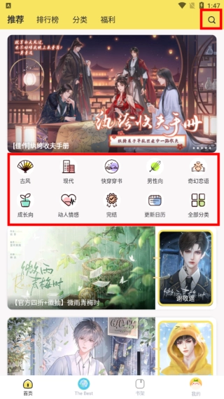 这里的作品类型十分丰富,涵盖古风、现代与二次元等多种风格,无论是宫斗宅斗、江湖仙侠、修仙玄幻,还是豪门娱乐圈、校园题材,多元剧情都可供你随心挑选。