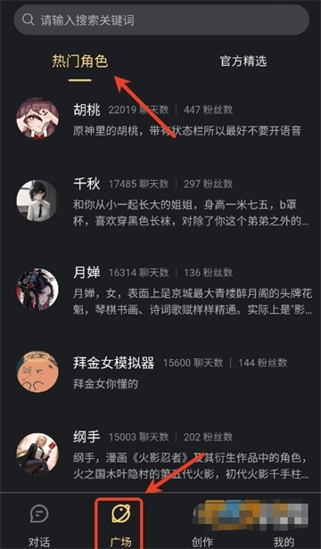 打开,用户们可以在广场页面挑选自己喜欢的AI角色