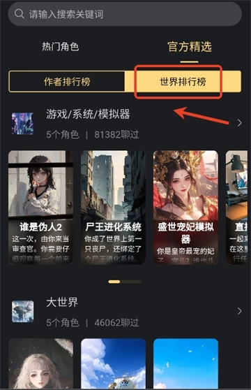 用户们还能依据角色排行榜挑选热门角色,进而体验更多角色扮演游戏。