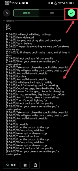 3、进入后你可以选择自行编辑歌词内容,也可以点击左下角的搜索按钮打开浏览器
