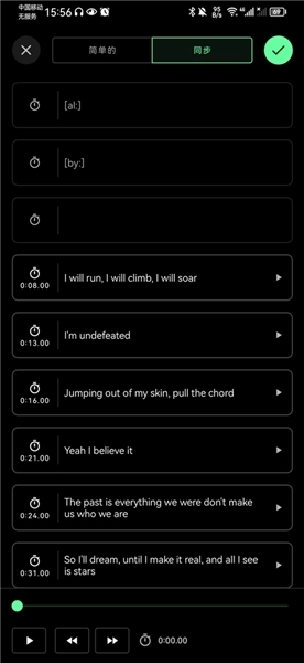 5、此外,你还能在同步界面里播放歌曲,并且在歌曲播放的同时自动同步歌词