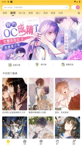 2、在软件的首页,会实时更新最新上架的漫画作品以及当前最热门的漫画资源。