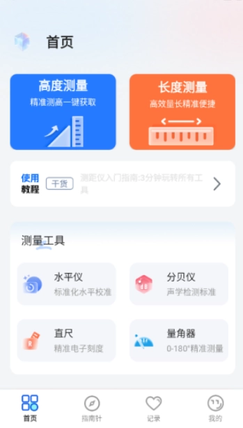 2、首页中心为用户配备了各类测量工具,例如水平仪、分贝仪、直尺和量角器等。